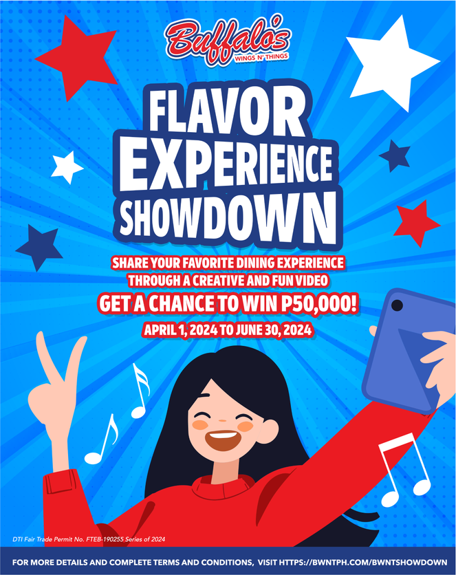 Lights, Camera, Action! đ„ Get ready to roll the cameras and show us your favorite dining experience at Buffaloâs Wings Nâ Things for the Flavor Experience Showdown! Create a fun and creative video on TikTok to get a chance to win up to PhP 50,000 cash! #BWNTFlavorExperienceShowdown